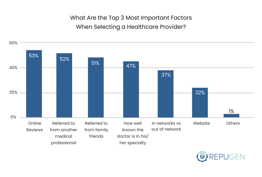 - Online Reviews Validation: Reviews validate patient choices across the board. While referred patients offer valuable reviews due to pre-existing trust, all patient reviews are crucial. Providers should actively seek and manage feedback from all patients to build a comprehensive and authentic online presence.